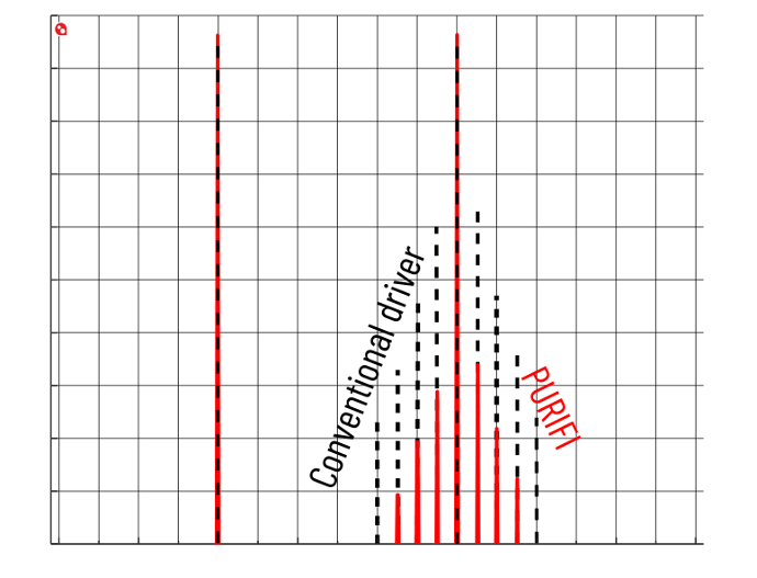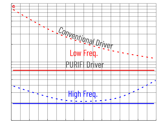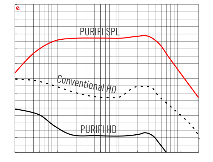 USHINDI woofers dramatically reduce intermodulation distortion (IMD), which occurs when different frequencies, such as a female voice and a bass guitar, are played simultaneously. This distortion, which can blur the clarity of music by allowing low-frequency tones to interfere with mid and high-frequency sounds, is reduced by over ten times compared to other high-end drivers, thanks to PURIFI’s advanced technologies.