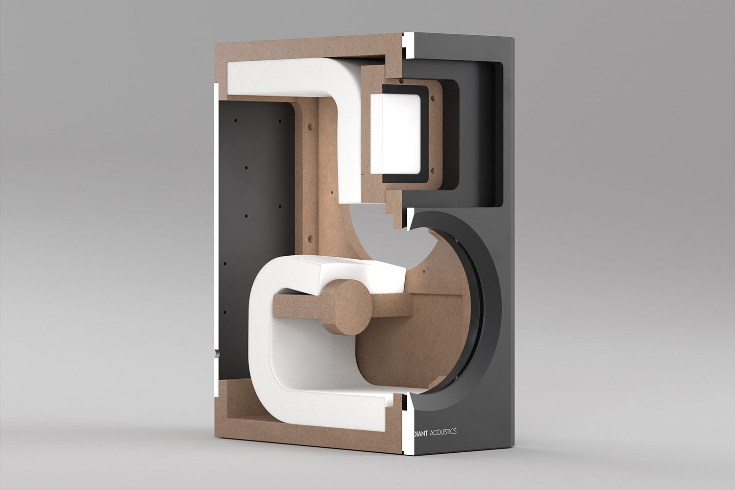 Internally, the cabinet is dampened with Basotect®—a flexible, open-cell foam made from melamine resin, renowned for its excellent sound absorption properties.