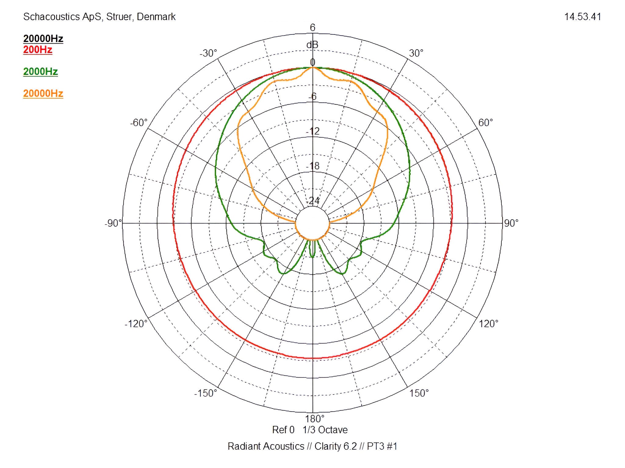 360° horizontal radiation, measured at three frequencies (200 Hz / 2000 Hz / 20 KHz).