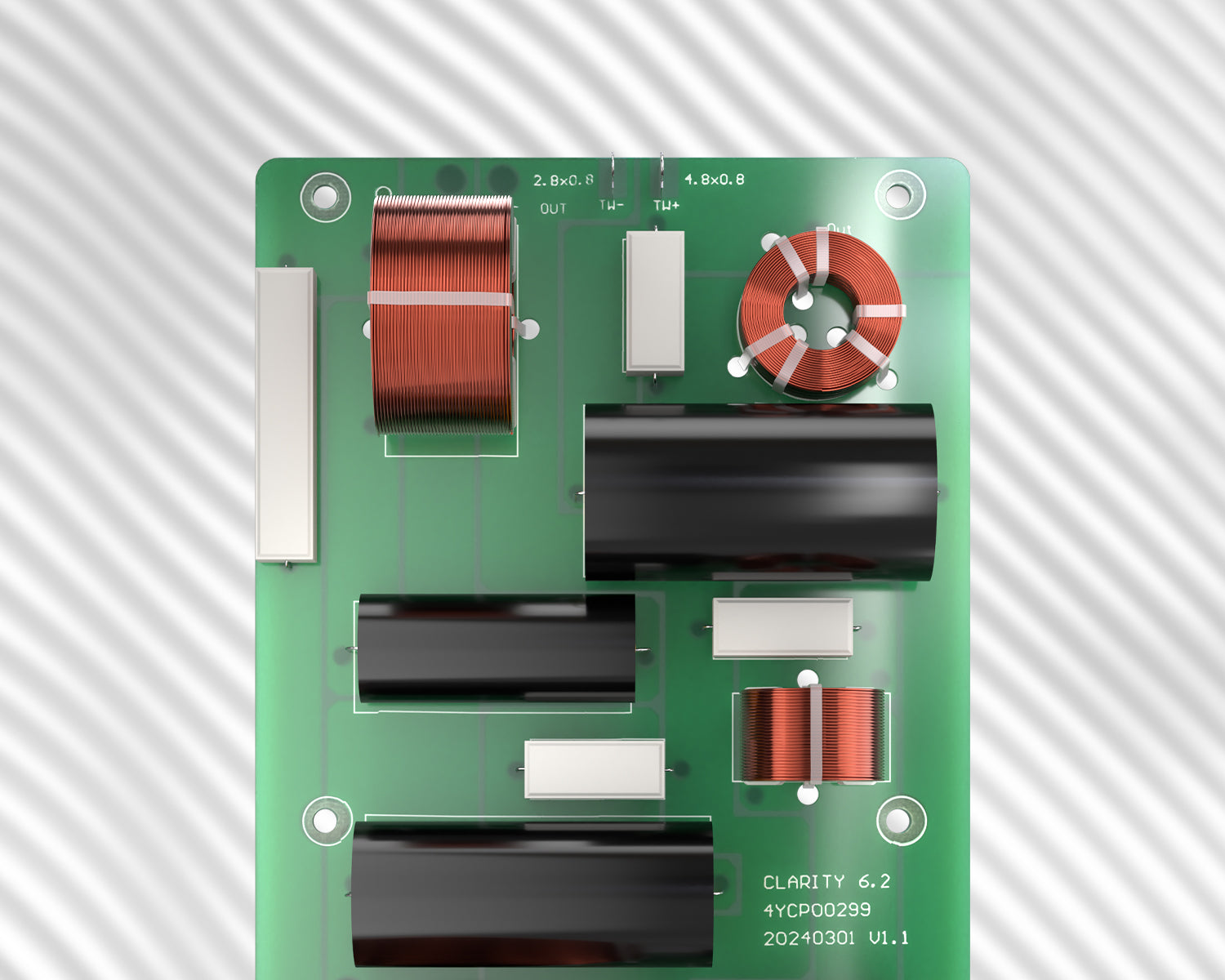 High‑end crossover crafted from premium materials, meticulously selected through data and listening tests to deliver exceptional performance, zero distortion and true value.